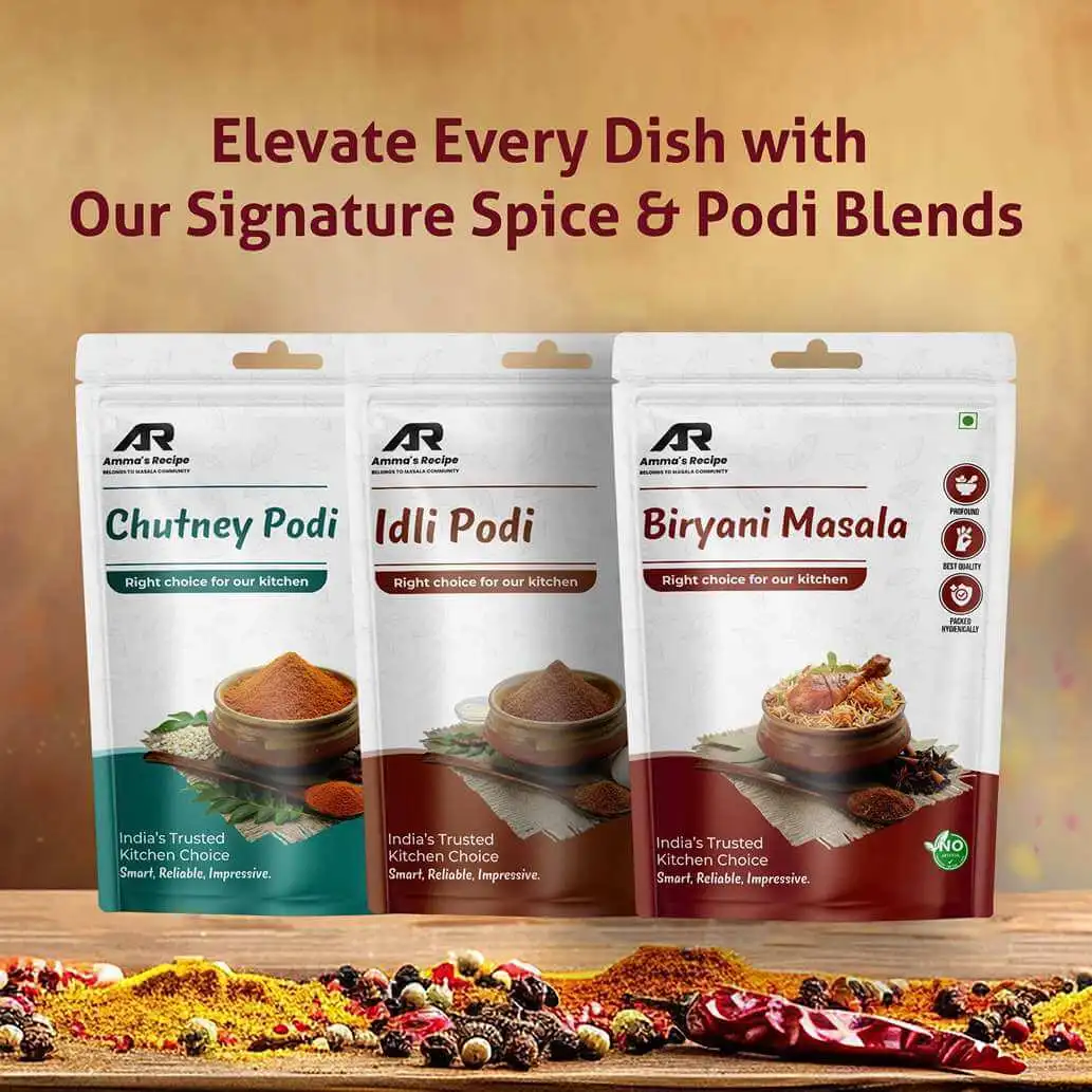 Our signature spice and podi blends bring authentic taste, vibrant aroma, and balanced heat to every dish, enhancing your cooking effortlessly every day.